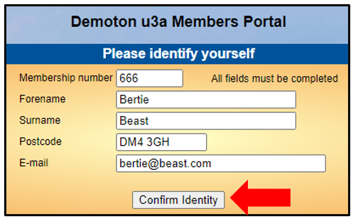 - Your e-mail address. Ths must match the email address you supplied when joining the Odiham and District u3a.